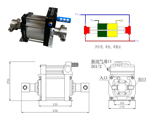 气动液体增压泵DKD系列:压力达3000bar(43500psi) DKD系列泵为单气动头双作用泵,可充油或水及大部份液体介质,泵体采用优质铝合金和不锈钢缸体柱塞,具有结构紧凑、质量轻、坚固耐用等特点。所有DKD系列液泵根据使用加压介质的不同采用相应材料密封件, 与DKA系列相比,脉冲小且其流量大50%. 驱动气体压力6bar DKD系列气液增压泵参数表 型号 增 压 比 出口 压力 bar 入 口 A 出 口 B 输出压力 巴(bar) 0 50 100 150 200 400 600 800 1000 1200 1400 1600 1800 2000 2200 2400 流量 升/分钟(L/min) DKD6 6:1 48 1〞 3/4〞 48.60 0 DKD10 10:1 80 1〞 3/4〞 30.61 6.41 0 DKD16 16:1 128 1〞 3/4〞 19.59 9.86 0 DKD28 28:1 224 1/2〞 3/8〞 11.02 10.8 8.4 3.21 0 DKD40 40:1 320 1/2〞 3/8〞 7.65 7.53 4.56 3.21 1.11 0 DKD64 64:1 512 1/2〞 3/8〞 4.89 4.75 4.65 3.78 1.89 0 DKD80 80:1 640 1/2〞 3/8〞 3.96 3.82 3.65 2.78 2.31 1.23 0 DKD100 100:1 800 3/8〞 3/8〞 3.13 3.12 3.01 2.96 2.46 1.97 0 DKD130 130:1 1040 3/8〞 3/8〞 2.4 2.33 2.21 2.01 1.56 1.35 1.09 0