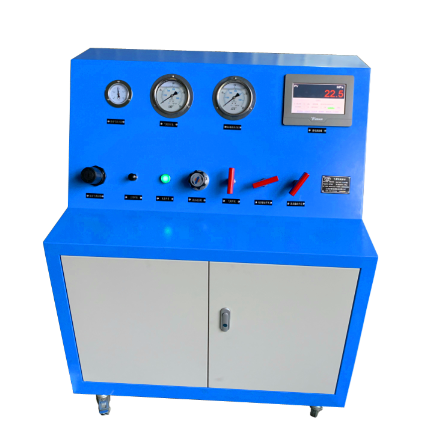 用于各种软管、金属管、各种汽车管路、冷凝器、换热器及工程机械液压软管、钢管、压力容器、截止阀、旋塞阀、止回阀、球阀、调节阀、阀组等高压阀门,石油机械及仪表阀门的阀体强度试验与高低气压试验。 主要技术参数: 1.试验压力:10MPa、25MPa、40MPa、60MPa、100MPa、120MPa、150MPa 2.试验介质:压缩空气、氮气、氦气或客户约定介质 3.驱动压力:5-8bar 4.测试工位:1工位或多工位 5.压力精度:0.5%F.S 6.控制压力精度:2%F.S 7.使用环境温度:常温-15-150℃ 8.控制方式:触摸屏控制